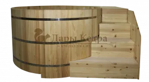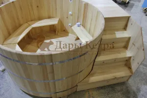 Эта великолепная купель не просто подарит комфорт от водных процедур, но и станет отличной альтернативой джакузи! Пребывание в кедровой купели с электроподогревом очень полезно за счет воздействия на тело теплой воды, обогащенной полезными веществами из алтайского кедра.