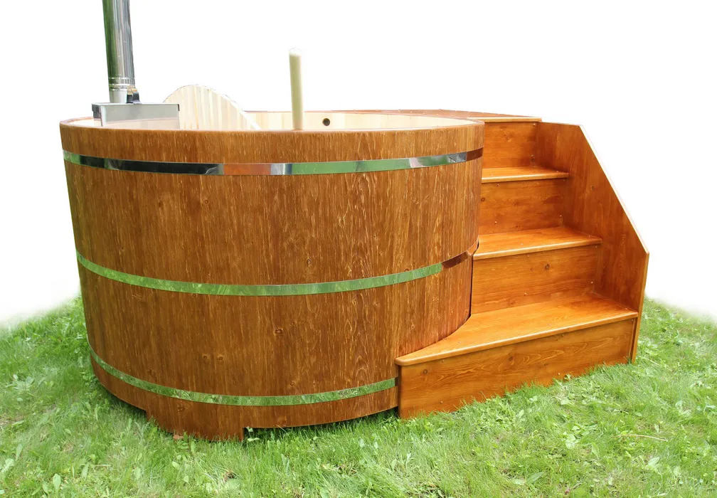 Выбирайте купель с учетом ваших возможностей и пожеланий: полностью из кедра, с пластиковой или композитной вставкой.