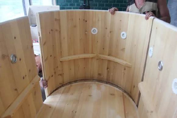 - Осторожно постукивая по стенкам изнутри изделия в направлении от центра, разобрать купель на части (дно + боковые-вертикальные стороны).