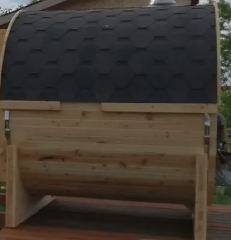 Вот такую баню-бочку 3 м заказывал в конце августа, через месяц ее изготовили, доставили в срок. Больше всего меня порадовало то, что баня реально готова к парению через полчаса примерно, фантастическая скорость прогрева! Баня очень комфортная и вместительная и дизайн оригинальный, на участке, как украшение стоит))Спасибо Дарам Кедра за такую красоту!